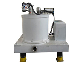 PG、PGZ系列離心機(jī)是立式刮刀下部卸料、連續(xù)運(yùn)轉(zhuǎn)、間歇出料、程序控制的全自動(dòng)過濾型離心機(jī)。PG為半自動(dòng)離心機(jī),電動(dòng)機(jī)驅(qū)動(dòng)轉(zhuǎn)鼓旋轉(zhuǎn),達(dá)到進(jìn)料轉(zhuǎn)速狀態(tài)時(shí),待分離的物料經(jīng)過料管進(jìn)入高速旋轉(zhuǎn)的轉(zhuǎn)鼓內(nèi),進(jìn)料達(dá)到預(yù)定容積後停止進(jìn)料,升至高速分離,在離心力作用下,物料通過濾布(濾網(wǎng))實(shí)現(xiàn)過濾,液相穿過濾層經(jīng)轉(zhuǎn)鼓孔甩至空腔經(jīng)出液管排出,固相則被截留在轉(zhuǎn)鼓內(nèi)形成圓桶狀濾餅,隨后可對(duì)濾餅進(jìn)行洗滌,達(dá)到分離要求後,轉(zhuǎn)速降到卸料轉(zhuǎn)速狀態(tài),刮刀裝置動(dòng)作,將濾餅從轉(zhuǎn)鼓內(nèi)壁刮下經(jīng)離心機(jī)下部出料口排出。
